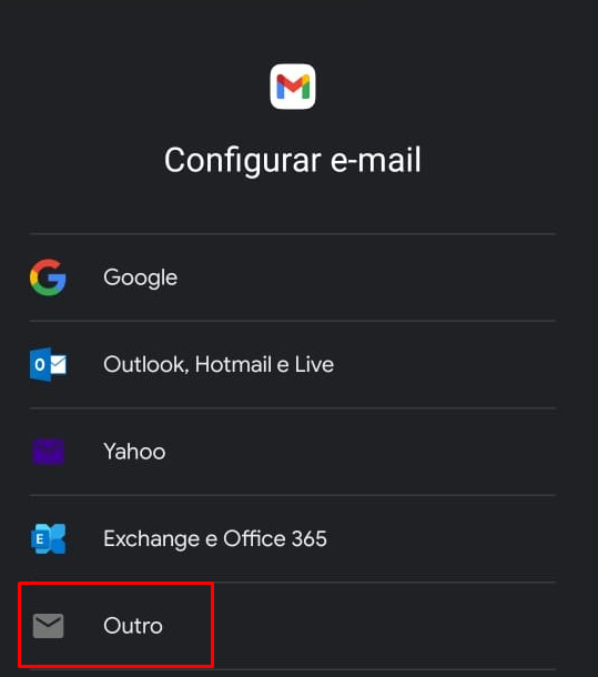 Selecione o tipo de conta como: IMAP;